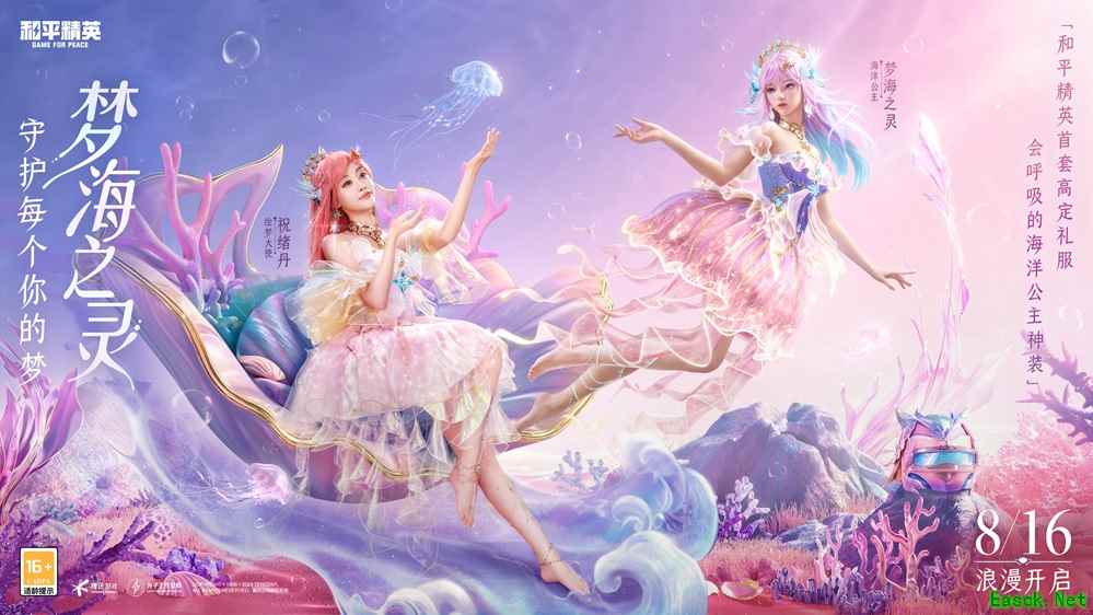 “绘梦大使”祝绪丹降临,和平玩家的守护 人气演员祝绪丹化身“绘梦大使”,身着梦海之灵,降落粉红沙滩,潜入深海唤醒神装升级枪,守护和平世界的和平,将浪漫的魔法注入海洋,开启夏日的浪漫绘梦。