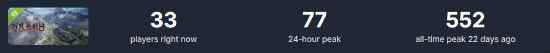 SteamDB数据显示,历史在线峰值为552人,发稿时仍有33名玩家沉浸其中。