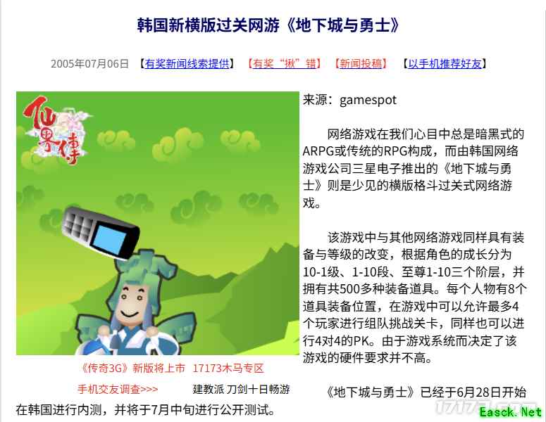 20年前的今天:韩国新横版过关网游《地下城与勇士》曝光