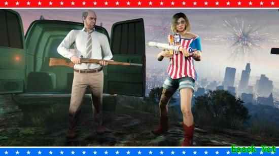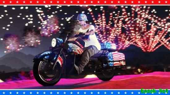 独立日折扣 趁着假日周末,入手折扣载具、资产及更多星条旗主题好物。西部君主(摩托车)与威皮解放者(越野车)六折优惠,这两款美国制造的经典座驾,专为撕裂柏油路与泥土地而生。本尼原创汽车工作坊所有改装升级项目同样享六折优惠,助您挑战街头狂飙的极限。 同时,乔氏 P-996 天煞(飞机)五折特惠,助您以军事级精准度翱翔天际。在枪支厢型车处用五折入手老式火枪与烟花发射器,用爆炸般的庆祝点燃节日气氛。枪支厢型车与武装国度还提供免费烟花发射器弹药,快来囤货吧。 以七折地堡、夜总会、回收站资产拓展您的犯罪帝国版图。更有六折优惠的节日主题装备、涂装、配饰与服饰等您来选: 爱国者烧胎烟雾 | 星条旗喇叭 | 星条旗脸部彩绘 | 胭脂鱼发型 | 爱国者降落伞 | 爱国者烟雾轨迹降落伞烟雾 | Mk 2 武器独立日涂装 | 机动作战中心独立日涂装 | 独立日特殊服饰、面具及套装 啤酒帽及更多内容尽在商战箱子 啤酒或许并非美国发明,但啤酒帽绝对是。在商战箱子中搜罗尿汤啤、本尼迪克特、爱国者及苏帕·韦特啤酒帽,还有充满节日氛围的幸福女神 T 恤等您来拿。 自由女郎渔夫帽 本周内随时游玩 GTA 在线模式,即可领取自由女郎渔夫帽,化身自由之光,截至 7 月 9 日。不过,别指望披着国家象征的外皮就能享受特殊待遇哦。