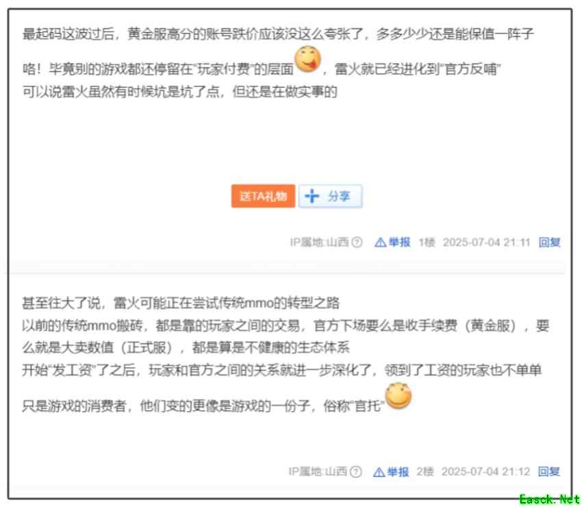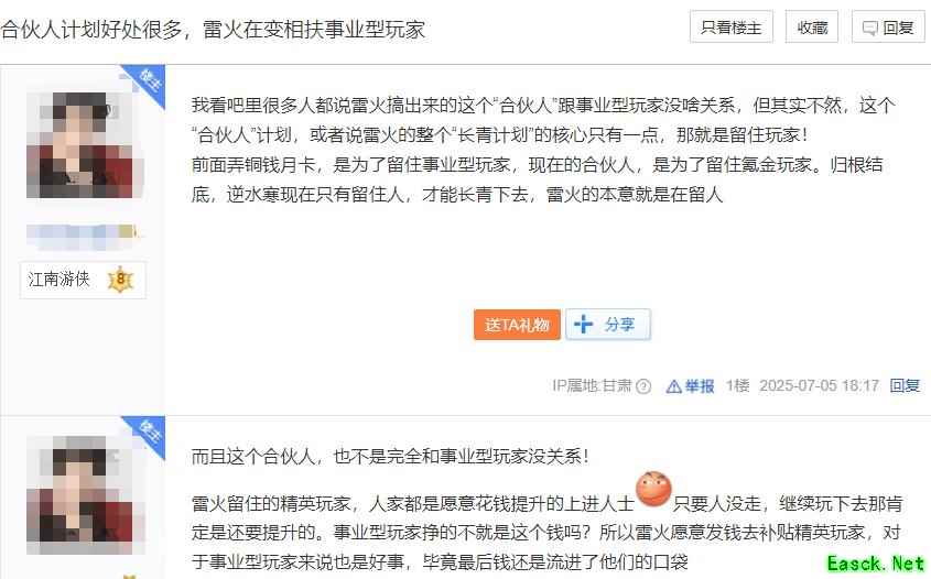 AI对话Error:提供的请求 URI 无效。请求 URI 必须为绝对 URI 或必须设置 BaseAddress。 在网游圈里,“把玩家当股东”这话,不少游戏都喊过,但大多飘在空中,听听就好。 谁能想到,《逆水寒》这个运营了七年的MMO老江湖,在周年庆这个节骨眼上,真就拍板搞了个大的,直接宣布要把游戏赚的钱,实实在在地分给玩家! 消息一出,别说玩家懵了,连同行看了都直觉“疯了”。 一、网易动真格,把“共同富裕”写进计划书 官方和玩家分钱的操作,听着似乎挺玄乎的,其实翻译过来就是,把你在游戏里投入心血培养的角色,变成一份能持续生钱的“活资产”。 以前玩家的角色是什么?是在虚拟世界的化身,是战斗力的象征,是投入时间和金钱的证明。但说到底,它只是个虚拟数据。 现在“合伙人计划”一搞,玩家的角色身份也变了。官方承诺,只要玩家符合条件参与其中,就能像持有股份一样,月月分享游戏增长的红利。而玩家为角色付出的心血、投入的资源,官方认可,并且愿意一起分这块不断变大的蛋糕。 这可就不是送点福利、现实中充值返利那么简单,而是实打实把玩家在游戏里的价值,尝试着进行了某种“资产化”的兑现。 这一步,走得够狠,也够有想象力。 玩家对此的议论也很多,其中不乏这种论调,“这不就是变着法子留土豪大佬吗?跟我们这些普通玩家有啥关系?” 这话还真说对了一半,但也不全对。官方搞出这一整套“长青计划”,包括之前的“铜钱换月卡”福利,再到现在的“合伙人计划”,核心目标都只有一个,就是留住人! 之前宣布的“铜钱换月卡”福利,瞄准的正是那些喜欢在游戏里打拼、搬砖、做生意的事业型玩家,让他们能安心扎根,有持续稳定的收益预期;最近推出的“合伙人计划”,则是更倾向那些在角色打造、装备提升上投入较多的玩家,给他们一个更直接、更诱人的长期回报承诺——你的投入,官方真金白银地认! 说到底,官方心里门儿清。一个网游,尤其是MMO,要想长青,根基是什么?是活生生的人气!是玩家愿意长久地待在这个江湖里。 市场环境在变,玩家心态也在变。以前可能靠新内容、新噱头就能拉一波人,但现在大家更看重的是稳定、是安心、是长期投入能看得见回报。 金价动不动崩盘?号价像过山车?这谁受得了?玩家跑路是分分钟的事。所以,网易这一连串动作,表面上是“分钱”,是各种花哨的福利计划,但骨子里就是在下一盘大棋。 稳住游戏的经济生态,稳住角色的市场价值,让整个《逆水寒》的江湖根基更稳当。 然后金价稳了,号价稳了,玩家心里踏实了,自然就愿意留下来,甚至吸引更多人来。玩家留住了,游戏生态健康了,官方自然也能持续获益。 这步棋,就是在努力构建一个更稳固、更可持续的双赢局面。玩家得了实惠,官方得了人心和更长久的生命力。 从目前来看,雷火这套组合拳打出去,战略目的算是初步达到了,玩家社区里的反响,也证明大家确实感受到了这份诚意和实实在在的利益。 二、成为合伙人,真金白银,月月到账! 那么,这个“合伙人计划”到底怎么实现?玩家真能像现实股东一样分到钱吗? 首先,这事儿没有想象中的那么复杂。网易这次直接面向全体逆水寒玩家开放,不设任何资格限制,也完全不需要玩家额外掏一分钱。想成为游戏世界的股东,路径很清晰,就是玩得尽兴,投入得认真!通过你每天在会呼吸的江湖里的行动来积累“月奖积分”。 这积分打哪儿来?核心就看你日常够不够勤快,战力够不够强,品味够不够独特。上线积极点,任务活动别落下,活跃度上去了,积分自然水涨船高,这是最实在的底子;要是你在竞技场、战场、副本里能打出名堂,排名往上走,这份硬核实力带来的分量,积分加成绝对也不少;当然,精心装扮侠客造型,收集那些让人眼前一亮的珍稀外观,达成各种彰显个性的成就,这份对江湖美学的执着追求,同样能为你赢来可观的积分回报。 当玩家的积分达到设定的目标值,就可以正式解锁“逆水寒合伙人”这个身份标识,成为游戏里名副其实的股东。 成为“股东”最大的甜头是什么?就是月月都能躺着领钱! 官方管这叫“逆水寒月奖”,按月准时发放,稳定得像一份按月结息的江湖工资。 而且官方喊出“逆水寒赚多少,你分多少”的口号,是真把玩家和游戏的命运紧密联系在了一起。也就是说,奖金池的大小,直接和逆水寒项目的整体业绩强绑定;游戏赚得越多,玩家股东能分到的钱就越多。 为了证明诚意,官方这次是真金白银砸下来了。首期月奖池已经锁定,光是黄金服的奖池金额超过1000万元人民币。 分到钱了,怎么拿?对此《逆水寒》给出了两种灵活的提现方式。 第一种是在游戏内增值,选择领取100%等额的绑定元宝,同时还能获得充值进度和皇宋通宝,并将获得75%月奖金额的艮岳声望,这对于喜欢在游戏内继续发展的玩家来说是个不错的选择。 第二种是直接领取现金,75%的现金通过网易支付到账,另外15%的藏宝阁满减积分相当于现金券,可以在藏宝阁购物时直接抵现,这对于想把收益变现的玩家来说非常方便。 官方强调就是打钱,“玩逆水寒相当于入股了一支零风险、高收益、每月分红的超级「优质股」!”在现实里找这样的投资机会可不容易,如今却可以在游戏里实现了。 不仅如此,《逆水寒》还为股东合伙人准备了荣耀与激励,让这些江湖儿女也拥有个名扬天下的机会。游戏内将实时公示全服前200名顶尖“股