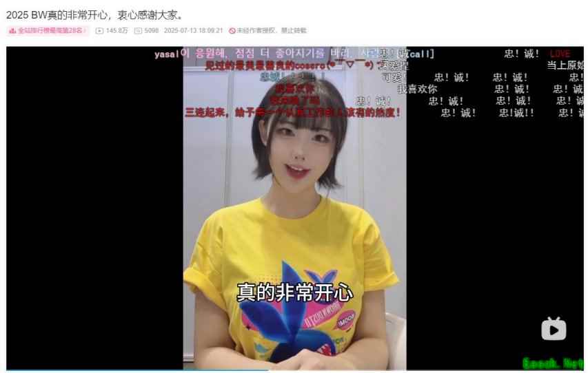 BW韩国Coser入驻B站!不到24小时粉丝数已接近40万!