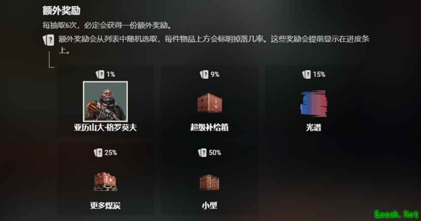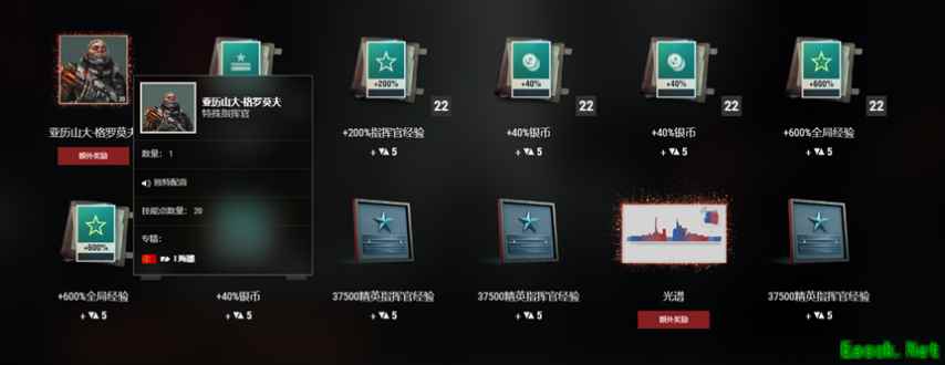 而且,本次礼包链的标准奖励中有较高概率获得特殊和稀有品级的加成,如果您对这些加成有需求,完全可以考虑通过在本次礼包链中抽奖来获得它们。 除此以外,每完成6次抽奖,您还会获得1个随机的额外奖励。这个奖励中不但有更多煤炭补给箱,还可能会有超级补给箱或拥有高达20技能点的特殊指挥官亚历山大·格罗莫夫。这位指挥官仅有1%的掉率,只有敢于冒险的幸运儿才能招募到他!