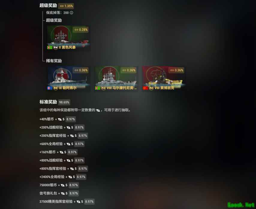 太长不看版本: 通过完成游戏内任务,可获取60枚跃迁代币,其余的跃迁代币仅能通过金币和现金购买,限购礼包的性价比最高; 抽取1次奖励需要花费20代币,如果没有获得超级奖励(战舰),那么每次抽奖都会返还5代币。您获取任务中所有的60枚代币后,再购买一次20枚代币的小礼包,就可以至多进行5次抽取; 最稀有的战舰奖励黑色风暴拥有史诗稀有度,其作战数据和钢船劳里亚完全一致;赛博朋克的作战数据和波扎尔斯基一致;勒阿弗尔是更注重副炮的布雷斯特;马尔康托尼奥·科隆纳采用卡拉乔洛的舰体,主炮能发射HE和AP弹,投射量高,此外还带有持续时间更长、范围更大的燃油烟以及SAP副炮; 每6次抽取后就可以获得一次额外奖励,额外奖励中的指挥官亚历山大·格罗莫夫自带20个技能点,获得他是您幸运的证明! 本次活动可以产出大量的消耗型加成,有需求的舰长不要错过哦!