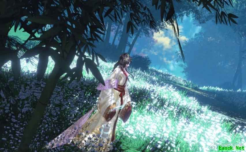 图源:烂马路,【开天】测试端编辑器内拍摄 在【开天】测试端新引擎的加持下 这款华服的质感和光影之美得以完美呈现 夕阳余晖透过竹叶的间隙 散下斑驳日光落于少女四周 衣衫上的金丝泛着金光,耀眼夺目 少女轻轻扇动【引秋】 徐徐清风扑面而来,竟带来些许芬芳 低眉一望,方觉以至花丛深处
