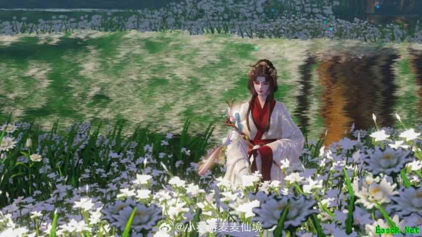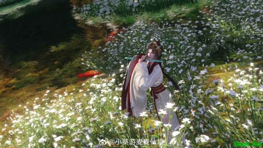 图源:小葵游麦麦仙境 浣纱弄碧水,自与清波闲 这幅绝美场景竟让少侠还原出来了 女子漫步于溪边花海 见此难得的景色 取玉笛【竹之韵】吹奏一曲 仙乐袅袅,引得池中锦鲤停留