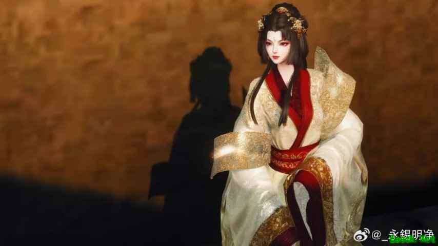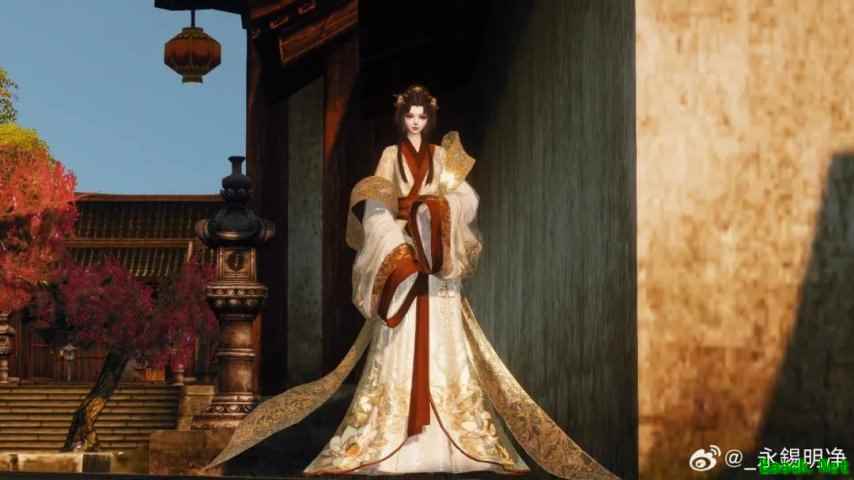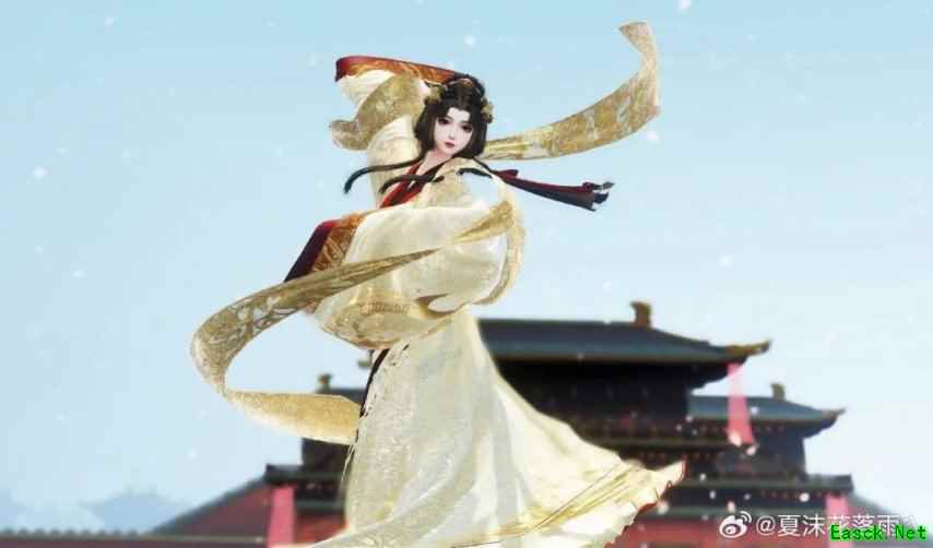 图源:夏沫花落雨乀 淡金色外衫绣工精致 取金丝勾勒锦鲤戏水、百花绽放 裙摆的末端更是别有洞天 清风徐来,其上菡萏展露芬芳 而后似窥见少女绝世容姿缓缓合拢 其动态之美令人惊叹 漫天飘雪的皇城多了一丝苍凉 少女手执利刃【边月胡霜】 似下定决心奔赴远方