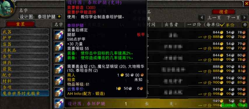 《魔兽世界》60级周年服P5阶段新增BIS图纸,5年前第一张卖出12万G,现在只要888G