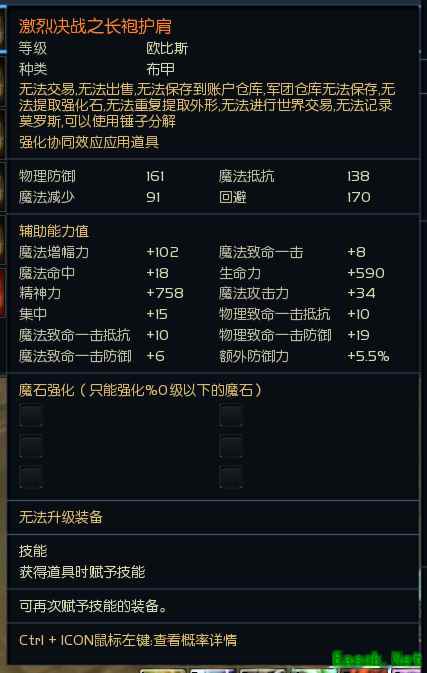 《永恒之塔》韩服新防具“激烈决战”属性详解,PVP、PVE属性合体