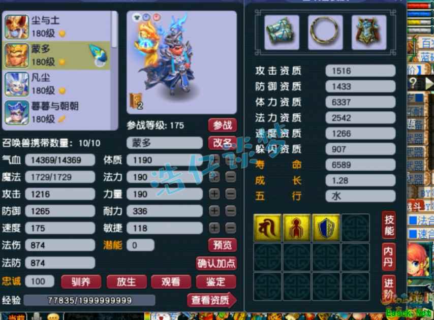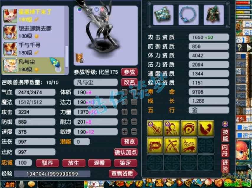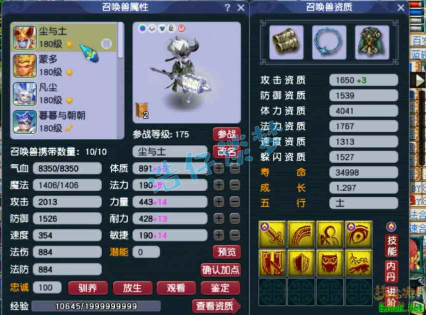 9技能高连血攻魔化童子,这只赐福了4个超级技能,任务与PK通用的攻宠。