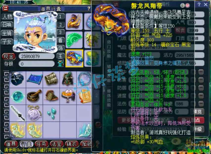 150级愤怒猫灵套腰带,打了14锻黑宝石。