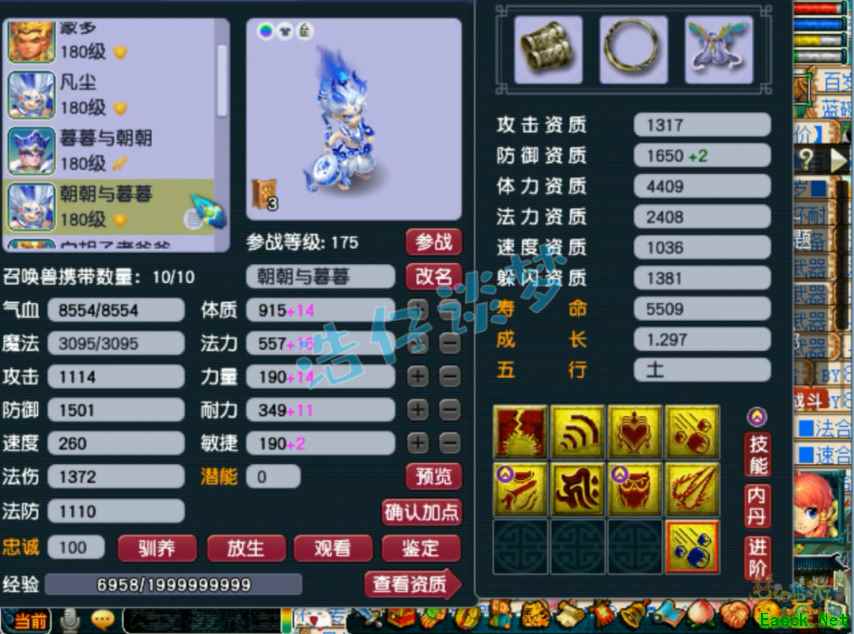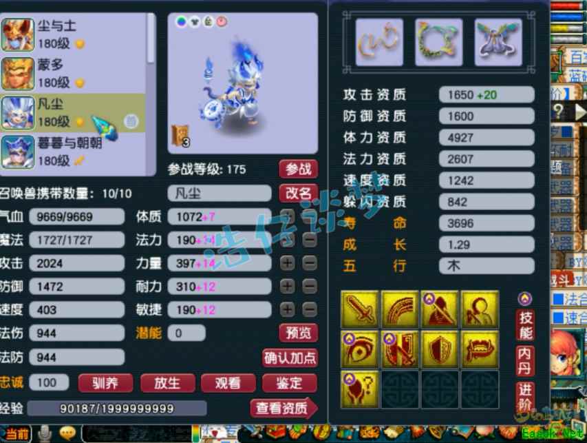 9技能血攻壁垒童子,攻资养出了加号,赐福了4个超级技能。
