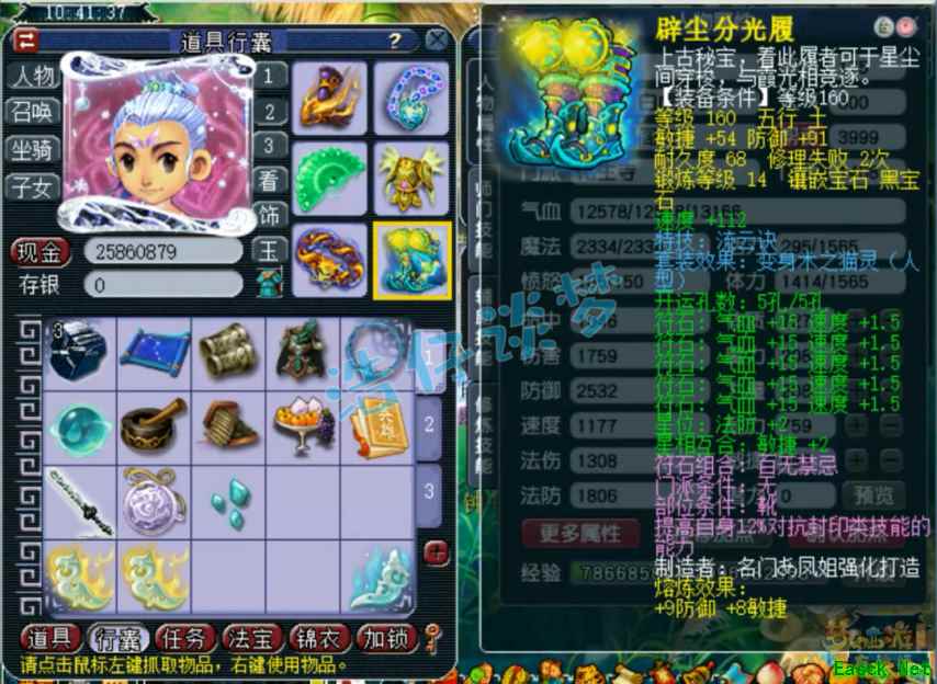 160级带流云诀的猫灵套鞋子,打了14锻黑宝石。