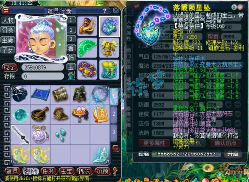 160级带破甲术的葫芦宝贝套项链,熔炼后初灵231,打了11锻舍利子。