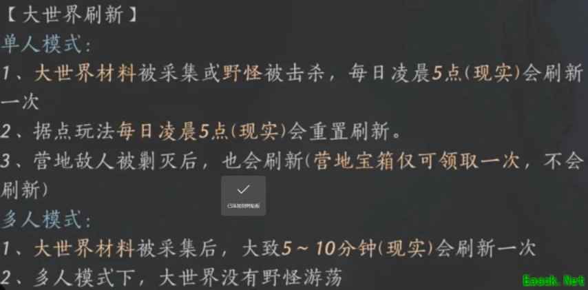 “燕云十六声”是一个非常有趣和挑战性高的游戏。新手玩家在游戏中快速升级叠音,需要掌握一些技巧和策略。以下是一些建议: 1. 熟悉游戏机制:了解游戏的升级系统、材料获取方式以及各种音符的属性和效果,这将有助于玩家更快地提升自己的能力。 2. 合理分配资源:新手玩家应该优先升级和提升攻击力相关的音符,如“破军”、“龙吟”等。同时,也要注意培养一些防御性的音符,以应对更高级别的挑战。 3. 反复尝试:游戏中的某些任务或挑战可能需要玩家多次尝试才能成功,因此不要气馁,坚持下去。 4. 寻求帮助:如果玩家在游戏中遇到困难,可以向其他玩家或游戏社区寻求帮助,他们会很乐意提供一些有用的建议和信息。 至于叠音材料的获取攻略,以下是一些建议: 1. 日常任务:完成日常任务是获得材料的重要途径,玩家应该尽可能完成所有可接的任务。 2. 副本挑战:游戏中有各种副本供玩家挑战,击败副本中的敌人有机会获得各种珍贵的叠音材料。 3. 商店购买:游戏中有一些商店可以购买材料,例如“神秘商人”或“音符商人”。玩家可以通过消耗游戏货币或声望来购买所需的材料。 4. 活动与抽奖:游戏会定期举办各种活动,玩家可以通过参与活动或抽奖来获得珍贵的叠音材料。 5. 收集音符:叠音材料的合成需要一定数量的音符,因此玩家可以通过收集和升级这些音符来增加材料的储备。 总的来说,“燕云十六声”对玩家的影响主要体现在以下几个方面: 1. 提升玩家技能:通过升级和获取更强大的音符,玩家可以提高自己的战斗技能和策略水平。 2. 增强游戏体验:随着玩家能力的提升,他们可以应对更高级别的挑战,体验到游戏的乐趣和刺激。 3. 社交与合作:游戏中的许多任务和挑战需要玩家之间的合作与交流,这有助于建立和维护社交关系。 4. 培养耐心与毅力:游戏中的一些任务和挑战可能需要玩家反复尝试和改进,这需要玩家具备耐心和毅力。 最后,对于新手玩家来说,“燕云十六声”是一个充满挑战和机遇的游戏。通过不断尝试、寻求帮助和积累经验,他们可以逐渐成为游戏的高手。 一、叠音材料介绍 装备叠音时除了需要大量的通宝之外,还需要以下几个材料。 通宝的攻略会在另一篇介绍, 本文就简单介绍一下这几个材料的快速获取方式 二、粗矿石、粗毛皮 众所周知,粗矿石、粗毛皮都能每周在商店购买200个 下面分享一下手动采集的攻略 ①粗矿石 采集的话,来到开封的鸿沟古渠,同时在物种分布这里点开石块。 这里一路上都是粗矿石,我们只需要沿着这条路一路走下去采集就可以了。 如果有采集马的话,那采集效率会更高。 ②粗毛皮 我们传送到清河地图,来到多人模式的丹崖界碑的这个位置,在物种分布这里勾选大麋。 这个位置有一群躺着的鹿,我们直接清理掉即可。 每次刷完就原地使用大轻功飞走再落下,又可以重复再刷一遍,实现无限刷取。 注意了这里是多人模式才能无限刷取,如果是单人模式则需要等待第二天才能刷新。 三、诗文琥珀、墨鼬毫 这两个材料都能在河西商店购买,每周限购20个,售价1250通宝。 以下是手动采集攻略 ①诗文琥珀 来到玉门关地图,可以看到诗文琥珀基本都在黄色的通道里 直接变成鱼跑一圈快速采集就可以了,也比较简单 ②墨鼬毫 墨鼬毫的话就比较麻烦了,因为动物会动,之前的无限速刷的Bug也被修复了。 其中下图的这个标记点是最好抓的,九个都在洞里,其他位置就比较分散了。 四、振玉、啸玉 这两个材料就是绝大部分新手都会卡的材料了,不过确实没有什么好办法,基本都是靠时间来获得的。 ①振玉 不肝商店每周限购100个 心力玩法,每消耗20心力可以获得3个振玉 上面都是靠时间慢慢养的,然后剩下的主要就是靠捡全地图的宝箱来获得了。 想速成的话只能肝探索度了,每个宝箱能获得1~2个振玉。 ②啸玉 这个就没有任何操作空间了,只能在不肝商店购买,而且新老玩家当前能够购买的总数量是一样的。 最后再补充两点 1. 收集材料时记得吃相关的增益食物,可以提升收集效率。 2. 多人模式材料五分钟刷新一次,单人模式下材料一天刷新一次,缺材料又想速成的话只能去多人模式获取材料了。 |