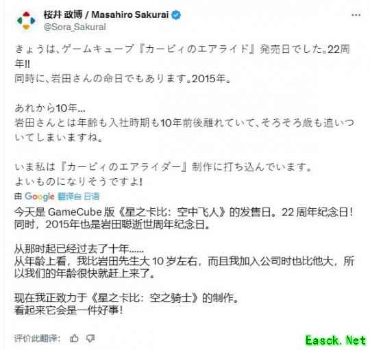 将成"非凡之作" 樱井政博谈《星之卡比》新作开发进展