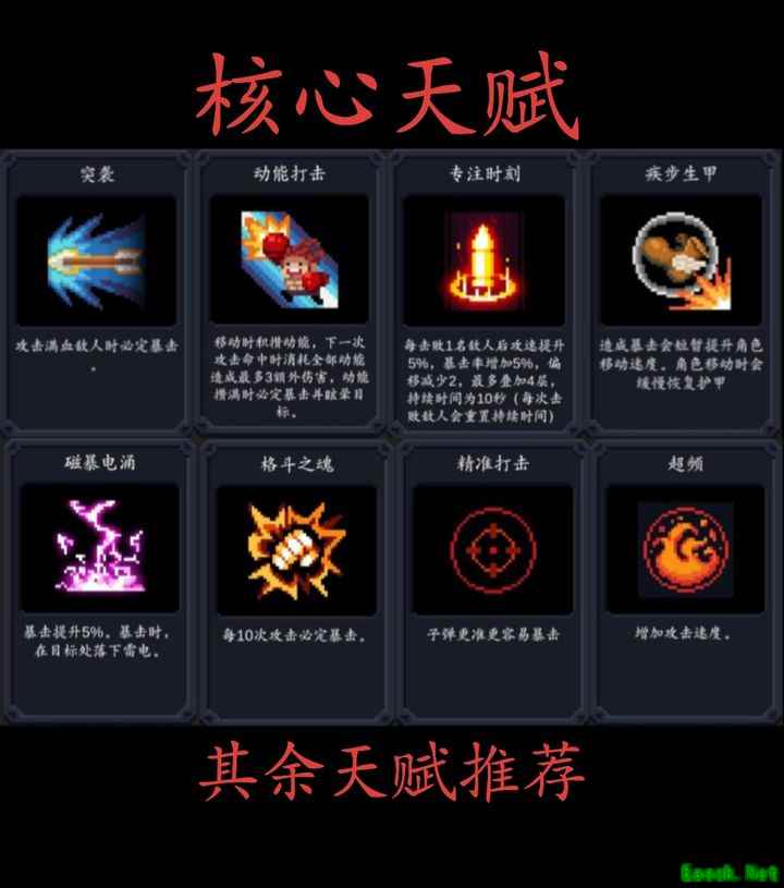 讨论元气骑士剑宗暴击移速流天赋推荐对玩家的影响可以从多个方面来看。 首先,对于新手玩家,了解并掌握剑宗的暴击移速流天赋选择可能会帮助他们更快地入门,因为这意味着他们需要关注的因素变得更少,只需要关注如何提高移速和暴击率即可。然而,这也可能导致一些新手玩家过于依赖这种玩法方式,而忽视了其他可能对他们更有帮助的天赋。 对于进阶玩家,讨论这个话题可能会引发他们对游戏更深层次的理解和探索,比如如何更有效地利用角色的被动技能和武器特效,以及如何平衡各种属性以提高角色的综合实力。这种讨论也可能促使他们去尝试和探索新的天赋组合,从而推动游戏内容的更新和发展。 此外,这种讨论也可能对玩家的游戏社交体验产生影响。与其他玩家的交流和讨论可以增强社区的凝聚力,促进玩家之间的友谊和合作。同时,如果讨论能够激发玩家们对游戏更深层次的理解和探索,那么这种讨论就具有了积极的教育意义。 总的来说,讨论元气骑士剑宗暴击移速流天赋推荐对玩家的影响是多元的,它可能帮助玩家更快入门,促进他们更深层次的理解和探索,也可能对他们的社交体验产生积极影响。但同时也需要注意,如果讨论过于侧重于某一种玩法方式,可能会限制玩家的游戏体验,因此平衡和多元的游戏体验才是最重要的。 在元气骑士中,剑宗玩家可尝试全新天赋套装暴击移速流,专为关卡模式设计。本攻略详解以突袭、动能打击、专注时刻与疾步生甲为核心,搭配磁暴电涌、格斗之魂等天赋,打造高暴击、高速度的丝滑战斗体验。 本文介绍了剑宗另一种天赋套装搭配方案。 此天赋套装仅适用于关卡模式,不适用于试炼之地。 1.核心天赋 突袭:对满血敌人必定暴击 突袭可提升疾步生甲与动能打击的触发效果。 动能打击:移动中积攒力量,攻击命中时触发额外伤害,蓄力完成的攻击必定暴击并使目标眩晕。 疾步提升甲和剑宗被动加速,强化动能打击蓄力效果。 专注时刻:叠加四层提升20%暴击与攻速,同时降低8点偏移。 提升暴击与攻速,更频繁触发疾步生甲效果。 暴击时短时加速并移动修复护甲。 移动中提升护甲修复并积蓄动能打击力量。 其他推荐天赋如下 磁暴电涌:提升暴击并召唤闪电。 搭配核心天赋,提升通关流畅度。 格斗之魂:每十次攻击必爆击 提升暴击次数,增强疾步生甲效果触发概率。 精准打击:提升子弹命中与暴击效果 推荐选择该天赋以增强有射弹的近战武器效果。 冰霜战斧、火焰战斧、冰霜剑、火焰剑等武器各具特色。 超频是提升攻速的通用天赋。 专注时刻可显著提升攻击速度。 提升攻击速度可有效增加暴击触发频率。 3.补充说明 我将这套天赋命名为暴击移速流。 感兴趣的玩家不妨尝试一下我这套天赋。 |