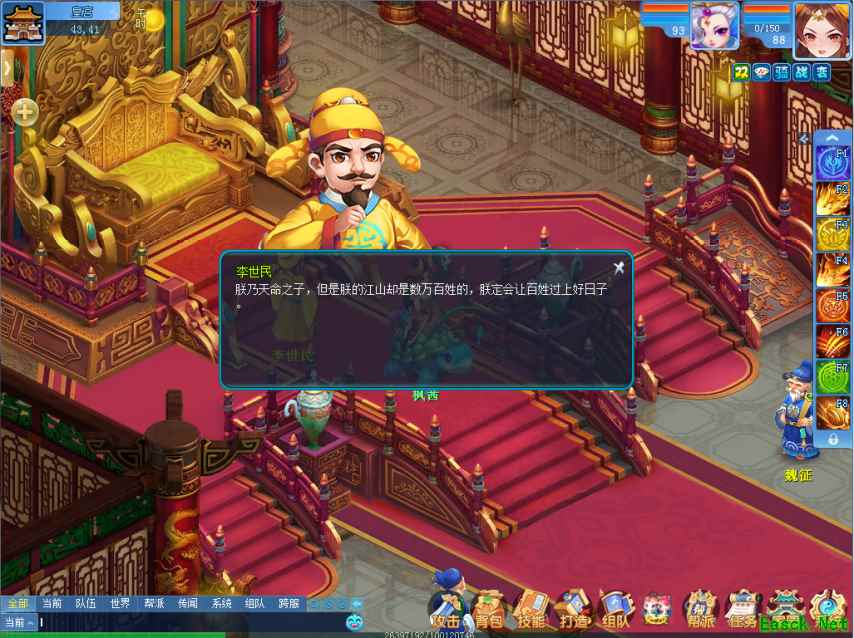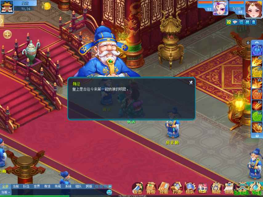 站在宫殿最深处的就是皇帝李世民。这是一位千古名君,他广开言路,纳天下群贤一起理政,打造了贞观盛世。跟他对话后,我们发现这位皇帝确实很贤明,一直在为大唐子民着想。