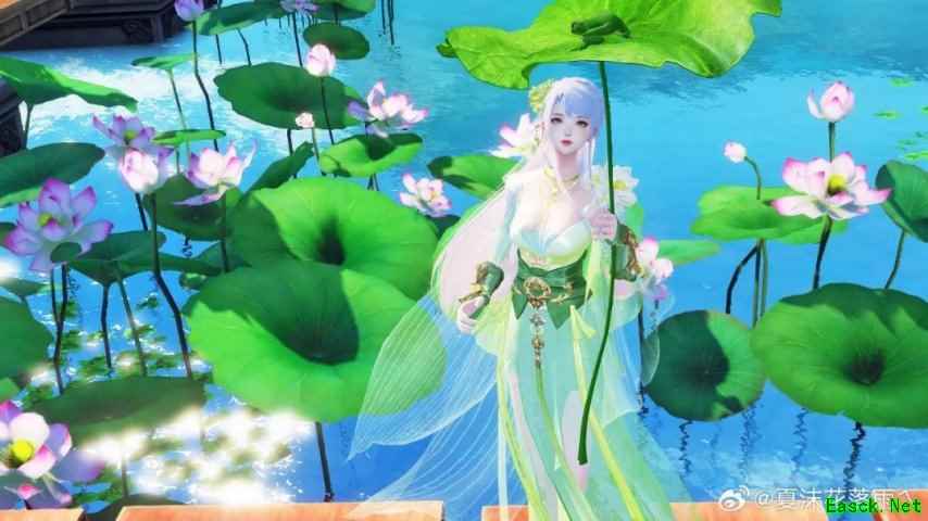 女装图源:夏沫花落雨乀 女款长发半绾,簪满嫩绿的小花 翠色衣裙加身,清爽沁人 莲瓣状抹胸别出心裁 肩侧盛放的莲花与夏日更是绝配 男款上身为深绿,更显深邃沉稳 衣摆泛青,令人眼前一亮 腰悬温润玉佩,随少年的步伐轻晃 水月圣灵