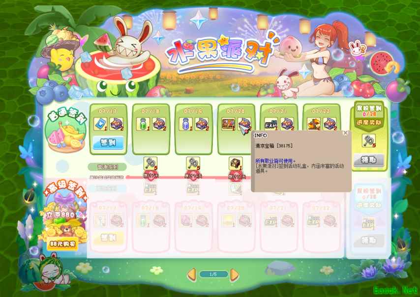 即日起至8月14日0点,《希望OL》乐园镇、狮子城、奇幻树海服务器的冒险者登录游戏点击右上角的活动图标即可进入水果派对界面。在活动期间,每天进入界面签到即可领取一份签到礼物和清凉宝箱。