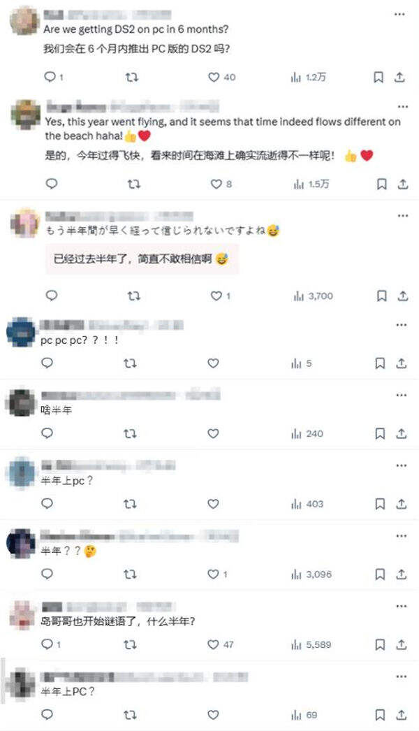 “半年”?小岛秀夫推特留言引热议,《死亡搁浅 2》PC版上线时间锁定?