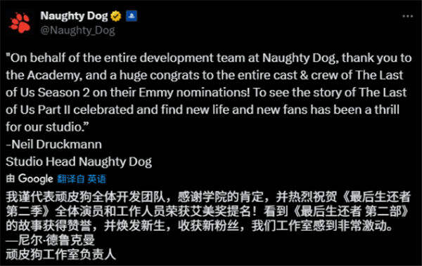 自豪之情溢于言表!顽皮狗尼尔谈《最后生还者》S2:艾美奖提名超多!