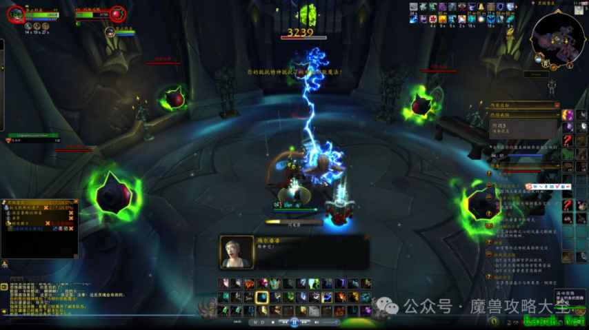 P3阶段 阶段关键字:秒驱散、治疗之泉图腾、涌动图腾不断。 ● 记得先打恶魔火球,如果碰到会被打断加沉默;进入下图场景后先驱散被恐惧的灵魂,然后用1个治疗链给其他灵魂怪刷血。