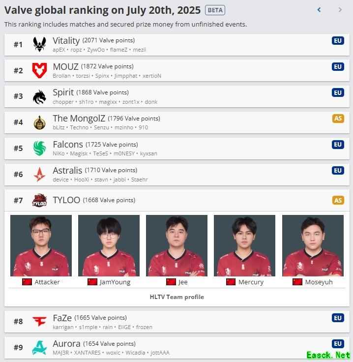 另外选手JamYoung也以优越的表现荣获本次赛事的MVP,成为了首位由HLTV评定为赛事MVP的中国选手。
