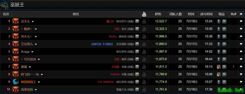 巫妖王又变成了狂暴战霸榜,前十名包含9名狂暴战,单单凭借小怪和瓦格里的伤害就能与其他专精拉开距离。