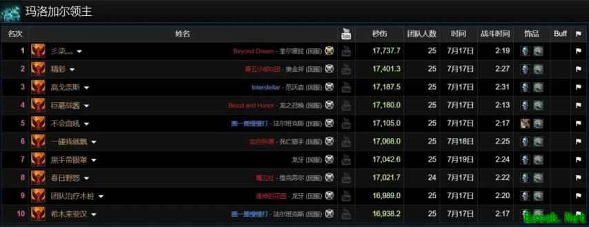 总结: 很显然,HICC大部分BOSS都更适合近战DPS的发挥,而对法系DPS存在一定的限制,再加上强力狂暴战和惩戒骑都标配橙斧,橙色武器本身就压制紫色武器,284装等武器在开荒阶段也是绝大部分玩家暂时无法获取的存在,于是就出现了两大近战DPS霸榜的局面。 |