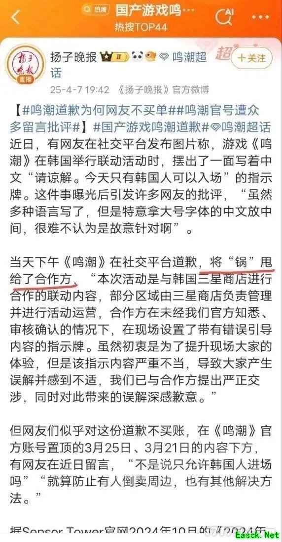扬子晚报发布澄清声明:就不当表述正式向《鸣潮》道歉