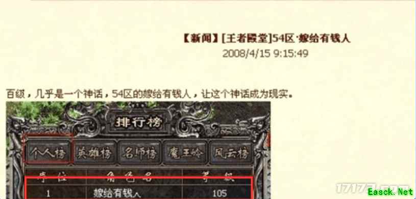 这一突破不仅让所有玩家瞠目结舌,连官方都为之动容,特地在官网发布新闻:“54区猛人突破百级,打破百级神话!” 这份来自官方的肯定,足以证明她在传奇史上的独特地位。 或许是高处不胜寒,在“嫁给有钱人”之后,另一位名为“难得糊涂”的玩家接过了升级的接力棒,相继突破200级、300级,延续着传奇的升级神话。