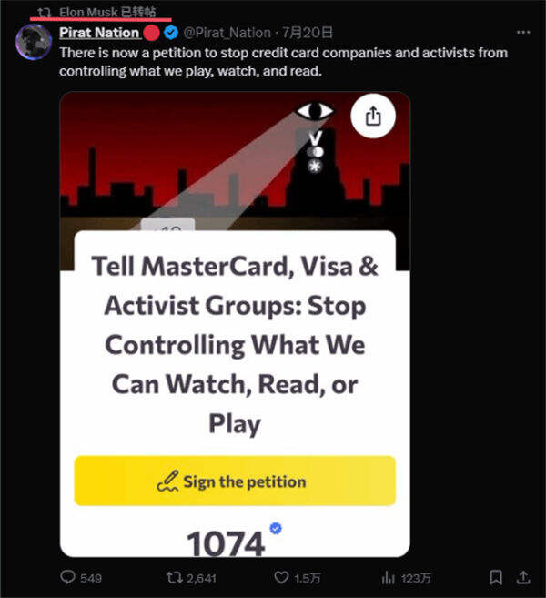 上万玩家请愿抵制Steam游戏审查新规,连马斯克转都转发支持!