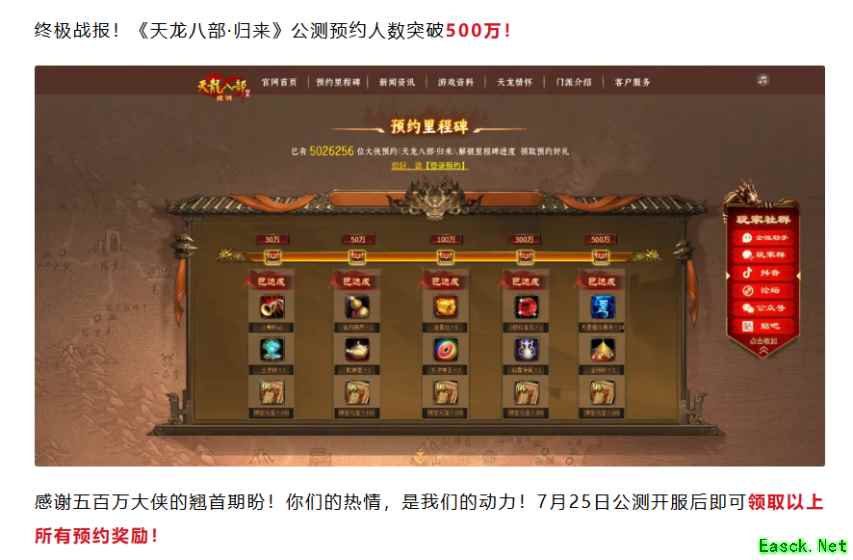 500万!什么概念?这意味着我们不是少数派。《天龙八部·归来》,几乎吸引到了所有曾经玩过天龙的玩家! 如今,距离游戏公测只剩三天。公测预下载和预创角,也在今天中午12点,正式开启! 意味着,你现在就可以去官网下载游戏了!意味着,你可以去抢注那个你用了十几年的ID了! 提前把角色捏好,把门派选好,等到7月25号中午12点开服那一刻,就能第一时间玩到了。