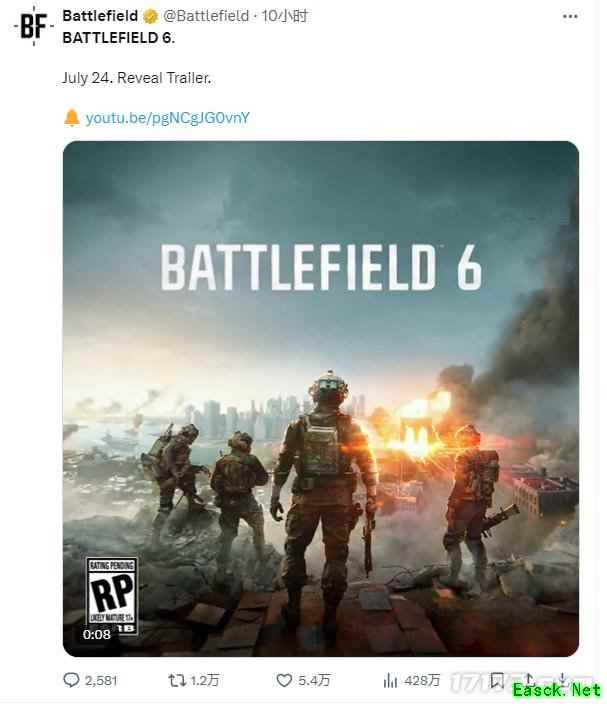大的要来了!《战地风云6》首支预告片将于明晚11点揭晓