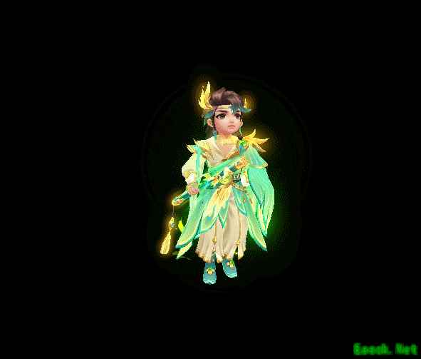 女款时装以绿色为主色调,凸显灵动与活泼。裙摆如流水般轻盈,随着动作轻轻摇曳,仿佛能带动周围的空气都变得轻盈起来。头上的发饰精致而不失典雅,与整体造型相得益彰,增添了几分俏皮与可爱。