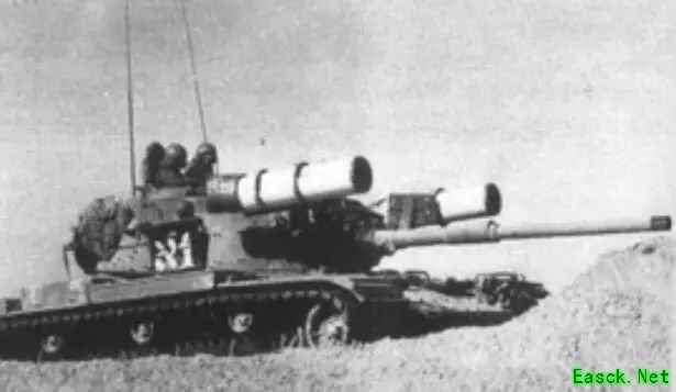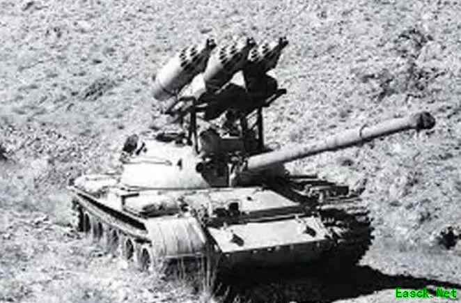 在中亚的T-62坦克,简单地加装了3个来自直升机的火箭发射巢。 ARRL的设计自然精巧,但也太过复杂,对于应急所需的战地改造而言根本无实现可能,因此在随后的十几年里,类似的改造尝试又回到原点: 把航空火箭弹和它的发射器、发射巢简单地焊上炮塔,外接电线拉进车体里,能跟随炮塔转动就算胜利。 稍微复杂点的设计会把火箭焊在炮管上,能跟着炮管随动,但也就仅此而已,这些改造日后也未成为制式设计,仅有少量照片残余。