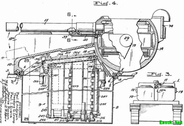 ARRL侧剖视图,这样的结构注定承受不了太大后座力。 想象一下,一台拥有300点左右单发损伤,0.2秒出头短装填的ARRL冲到对手侧后方,接下来一口气倾泻10-20发火箭弹,这样的猛烈火力即便有穿深限制也非一般坦克能扛下,更何况高级坦克大多放弃了沉重的全面防护,转而在侧后方布置两位数厚度的装甲…… 好吧,这只是不切实际的想象,因为史实配置,打火箭弹的ARRL一样未能走下绘图板,若非博古通今的专利系统保存其资料,它恐怕还不能在互联网时代被发掘出来重见天日。