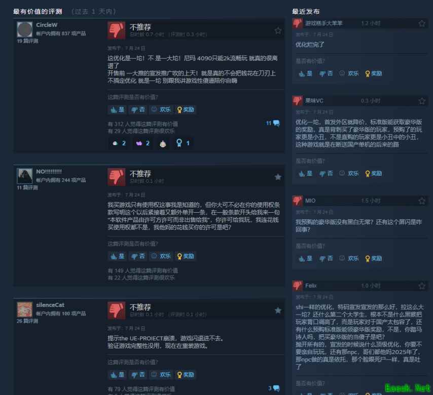 作为继《黑神话》之后的第二款高品质国产单机,这样糟糕的首发表现显然无法令玩家满意,游戏直接从“村里第二位大学生”变成了“村里第一个大学退学生”。