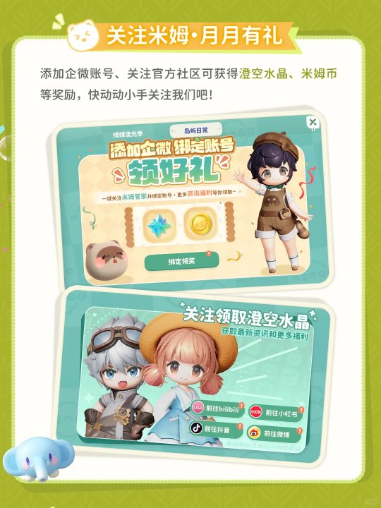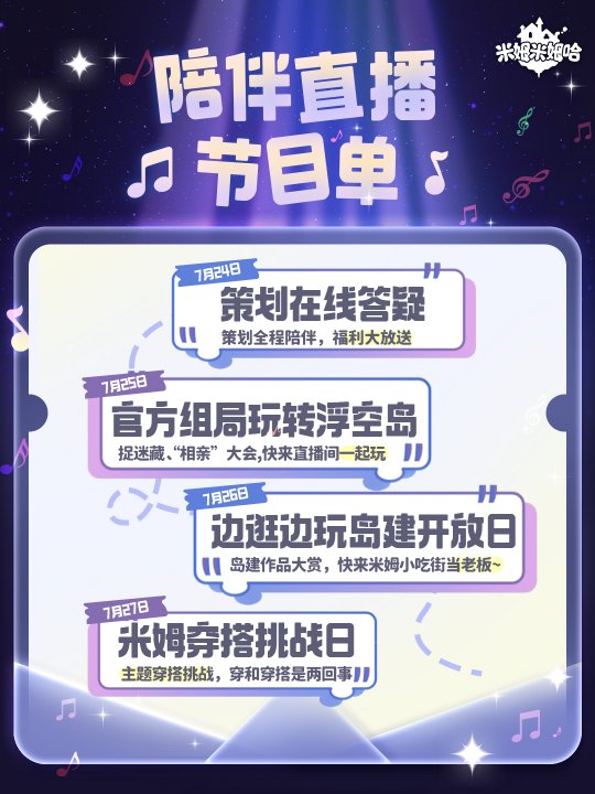 精神超前的生活模拟游戏《米姆米姆哈》已于7月24日正式全平台上线,安卓、iOS、PC三端互通,让玩家可以随时随地畅玩!为迎接广大梦想家的到来,公测期间准备了超多福利活动,玩家登录游戏就能立刻领取。游戏内也将同步开启【绮绿流光季】,让梦想家能沉浸体验巨树之岛的风土人情。 ![]() 官方疯了!首日白嫖300种福利,累计可得150抽! 此次公测阶段,玩家累计可以拿到150+抽、18套华服以及80+个免费部件等等多重奖励。玩家登岛首日即可在邮件中领取30抽!如果完成游戏内多个任务以及参与「绮绿流光季」活动还可以获得大量服装家具抽卡券和免费套装等等海量奖励。 ![]() 预约玩家还可在邮箱中领取达成千万人数预约里程碑的全部奖励,官网参与邀请好友的奖励也将在公测当天全部发放。 ![]() 别忘了!在游戏内的活动页面添加绑定企微账号以及关注官方社区账号还可以获得澄空水晶、米姆币等等奖励。 ![]() 快乐加码!『绮绿流光季』惊喜开启,陪你治愈一夏! (*′?`)~? 陪你去飞!本次公测版本,《米姆米姆哈》带来了玩法、角色、社交与建造等多维度的全面更新。7座风格各异的浮空岛屿全面开放,360°全景探索让每一位梦想家都能沉浸式体验梦世界的魅力; ![]() 陪你去疯!多达20种社交羁绊让梦世界的每一次相遇都充满温度,无论是偶遇互动、组队派对,又或是加入限时开启的大型蹦迪现场,在这里随时随地皆可触发属于玩家们的温馨社交故事。 ![]() 陪你去种!50+只米姆集结登场,不仅形象各异、性格鲜明,更可为玩家们高效“打工”,从种植到生产全流程解放双手,实现真正意义上的轻松“躺赢”。 ![]() 陪你去躺!生活经营不再是无休止的爆肝,觉得累了完全可以“躺平”,悠闲钓鱼,与好友嬉戏打闹……多种方式任君选择,即使独自一人,也能静享属于自己的美丽时刻。 ![]() 公测期间开放了100+部件随心搭配,玩家可以自由定制穿搭方案,既能以套装亮相,也能发挥创意解锁个性化造型表达,轻松打造属于自己的梦世界时尚标签。无论是日常打卡还是社交派对,每一次出场都能成为全场焦点。 ![]() 陪你去建!8D立体岛屿的建设已然可以带来更多奇思妙想的设计,同时700+家具散件更是解锁了浮空岛自由布置空间的更多可能,以此助力玩家打造独一无二的专属岛屿风格。 ![]() 蹦迪摇人!顶流天团齐聚,迷星派对热辣开摇! o(* ̄▽ ̄*)ブ 海量奖励领不停,更要叫上搭子放肆玩!公测期间将会限时开启大型集体狂欢活动——迷星派对,这不仅是“社交悍匪”的狂欢时刻,也是社交i人的破冰之旅。官方为大家准备了包含《给我一瓶魔法药水》《危险派对》《雏鹰起飞》在内的20+网络热曲,更有多种舞蹈动作让玩家尽情的展现自己!活动中玩家不仅可以和大家一起跳舞蹦迪,进行包含叠罗汉在内的多种社交互动,也可以一起搞怪拍照,记录下在这梦世界中最快乐的时光。 ![]() 众人云蹦迪期间更有高能大咖前来助阵,冯提莫、周周啊、不齐舞团、逍遥散人、田一名等一众顶流主播化身梦世界“DJ天团”!他们的拿手好戏这一次将在浮空岛的舞台上演,也许曾经无数次直播中玩家们只能充当屏幕前的观众,但这次就有机会在云蹦迪的现场与他们成为游戏搭子,与之一同打卡、互动,开启一段独一无二的社交旅程~ 主打陪伴!直播菜地躺玩,策划在线答疑福利放不停! 开服期间官方直播间陪伴不停,官方策划也将在线驻守,实时与玩家们互动答疑。无论是新手入坑的种田教学、岛建装修指南,还是公测最新玩法,玩家们都能在第一时间获得最权威的解答。同时,直播间还将不定时放出超豪华直播福利,6个蹦迪舞蹈动作免费送,每日成长礼包放不停,所以新老玩家们在梦世界“旅行”的时候,别忘了打开官方直播间哟! ![]() ![]() 《米姆米姆哈》主打0分孤单全糖陪伴,希望每一位上岛的玩家都可以获得欢乐的惊喜生活!那么赶紧邀请自己的米姆搭子,即刻起我们正式出发登岛!米姆陪你,总有超超超多惊喜~