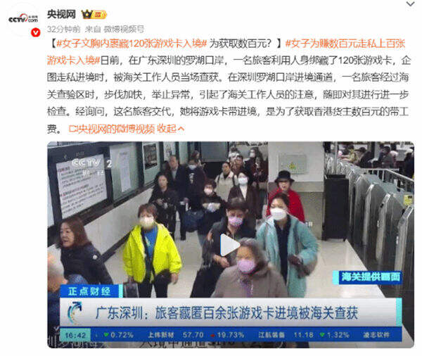女子文胸藏120张游戏卡入境被查:为数百元带工费铤而走险?!
