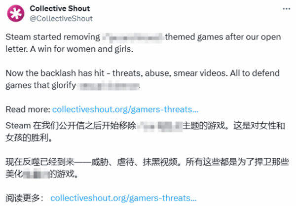 Steam 平台近期新增的一条内容审查新规,正持续搅动着游戏圈的神经。这条规定明确禁止发布可能违反支付处理商、相关卡组织及银行规则的游戏内容,尤其针对某些特定类型的成人内容,新规实行后,一批成人游戏已被强制下架。 这场变革的背后,被指向了反物化女性组织 Collective Shout。该组织长期致力于抵制媒体、广告及流行文化中存在的物化女性现象,此次被曝向支付机构施压,推动 Steam 下架其认定的 “不合规游戏”。在新规落地初期,Collective Shout 曾公开庆祝这一 “成果”,甚至放言要将这类游戏 “斩尽杀绝”,这样的姿态迅速引发了玩家群体的不满。 随着事件发酵,网络上出现了大量针对 Collective Shout 的批评声音。对此,该组织近日发文回应,称这些批评大多充满威胁、辱骂与抹黑,而批评者们的目的就是为了捍卫这些成人游戏。“他们以为只要威胁恐吓够多,我们就会闭嘴,但我们绝不屈服。”Collective Shout 在声明中强调,批评者的激烈反应恰恰说明 “我们是他们真正的威胁”,否则 “不会费尽心机要让我们沉默”,并表示自己会寸步不让。 这一回应并未平息争议,反而让矛盾更加凸显。支持者认为,Collective Shout 的初衷是维护健康的文化环境,抵制物化女性的内容,向支付机构施压是在履行社会责任;反对者则指出,该组织的做法越过了合理监督的边界,通过影响支付环节变相干预游戏内容审核,本质上是用单一价值观绑架平台规则,最终损害的是创作者的表达自由与玩家的选择权。 而 Steam 作为全球最大的综合性游戏平台,其此次因支付机构规则调整内容标准的行为,也被部分玩家视为 “妥协”。毕竟,平台的内容审核政策向来以 “包容” 著称,如今将审核权间接让渡给支付机构,难免让玩家对其独立性产生质疑。目前,已有玩家在请愿平台发起抗议,要求 Steam 调整新规、保护合法成人内容的创作与传播,相关话题的讨论仍在持续发酵。这场由新规引发的风波,已然成为一场关于平台审核自主权、支付机构规则与第三方组织影响力的复杂博弈,也让 “文化监管边界”“商业平台责任” 与 “社会力量干预尺度” 等问题再次进入公众视野。 |