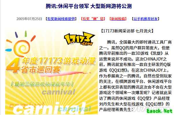20年前的今天:休闲平台领军 腾讯大型新网游将公测