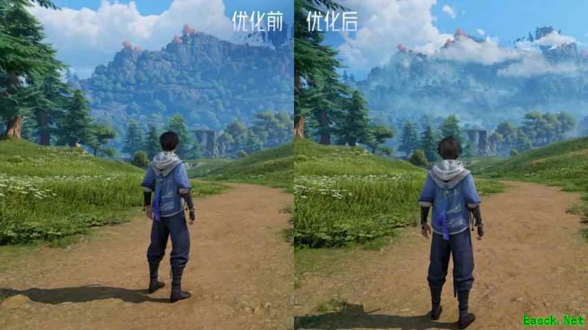 看完近景看远山——为了解决过往测试版本中远景在直射光照下没有雾的问题,我们优化了远景体积云雾的细节,融合了体积雾和高度雾的表现,加上风场的改进,让王者大陆的风景层次感更强、更真实。