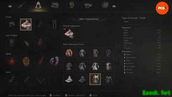 与洗点系统一样,《明末:渊虚之羽》使用幻化机制不会消耗任何游戏内货币,让玩家可以自由地在这款类魂游戏中混搭心仪的服装造型。 玩家只需要切换到装备(Equipment)菜单,选择你的护甲部件(头部、上身护甲、护腕、下身护甲)。选中某个装备后,按下 Y键/△键/F 来选择你希望该装备呈现的外观。