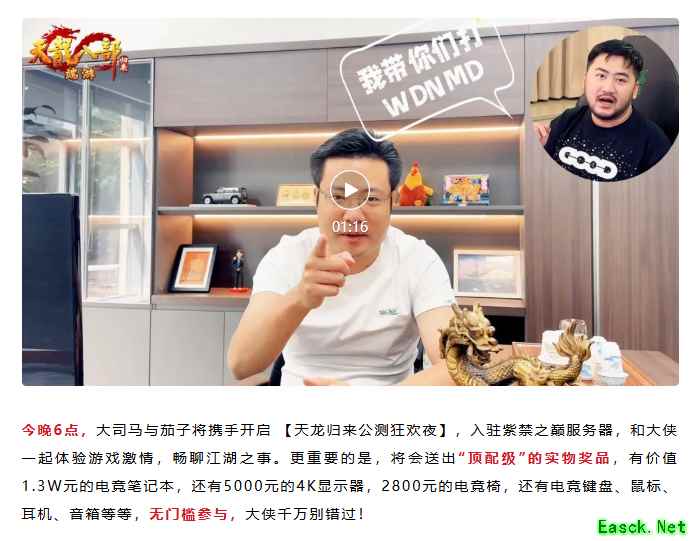 这两位,一个是天龙老玩家,一个是人生第一款网游就是天龙的初恋玩家。他们俩凑一块儿,聊起天龙,那绝对是节目效果拉满。 而且直播间里,还要送一堆顶配级的实物奖品!什么价值1.3W的联想拯救者、5000块的三星4K显示器、2800的安德斯特电竞椅…… 官方这是摆明了,不仅要让我们在游戏里爽,还要把我们的电脑桌都给承包了。 所以,兄弟们,别再观望了!我们等了十八年的,更轻松、更福利、也更热闹的江湖,真的回来了! 现在,500万兄弟已经集结,服务器全线飘红,大司马和茄子也已经准备就绪。 所有的故事,就等我们这些主角登场了。 别犹豫了,现在就去官网下载游戏! 《天龙八部·归来》,绝对值得你,再回来一次! |
