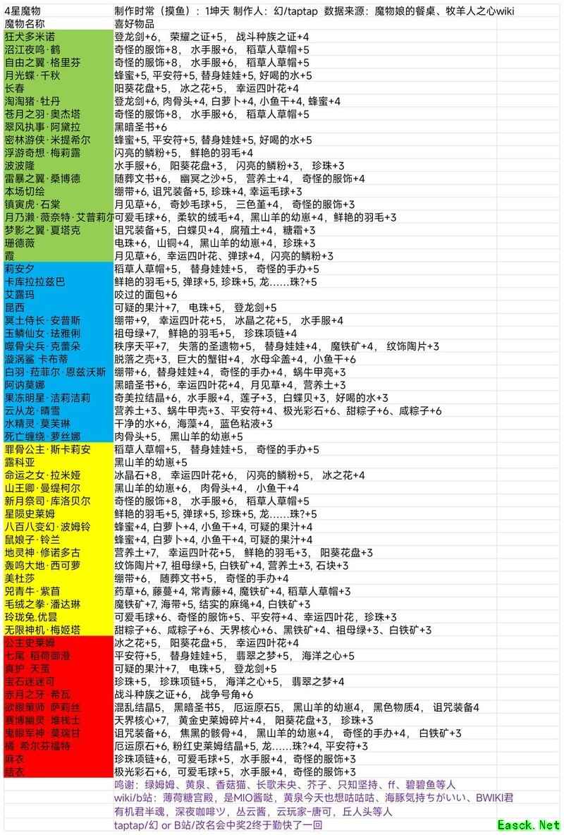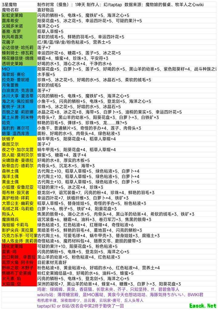 牧羊人之心中提升魔物好感是关键,本文整理自魔物娘的餐桌与官方Wiki,涵盖各类魔物喂养技巧与CD机制,助你轻松攻略。 资料来源:魔物娘的餐桌、牧羊人之心维基,感谢提供。 烦死了Microsoft 365和那个破网,浪费我好多精力,之前打的字还被吞了,不说了就这样。 ———————————————————— 数据看起来挺不错 有需要的请留言评论区,会不定期更新~ 下面那条长长的回复是作者在总结表格中的问题,如果有错误可以在那里指出,重复的内容我会为了方便删除,除此之外不会删评论。 —————————————————————— 留坑,遥遥无期 各类联动按分类放置一张图 各位魔物的羁绊开启次数各不相同,由于魔物种类繁多,统计起来颇具挑战,已有资深玩家主动提出帮忙整理对比数据。 —————————————————————— 最后放几个tip() 有没有人总在给魔物用什么道具上犯迷糊,只好一遍遍查表,有些魔物都查过好几回了 >_< 其实只要给那些便宜又加成多的材料起个名字就行了。 大根子取名叫营养土根子。 命运之女拉米亚(四星地),人称冰晶石之女。 叫我创意鬼才吧 草干肝等词需谨慎使用。 草字写成艹,容易让人误解,对吧?>_< 可喂养的CD解释(仅供参考,注意辨别准确性) 每次喂养后需等待两小时恢复冷却,最多可累积两次。若达到两次上限则停止恢复,直到使用一次后重新开始两小时冷却。两次连续喂养之间有约两秒的间隔。 |