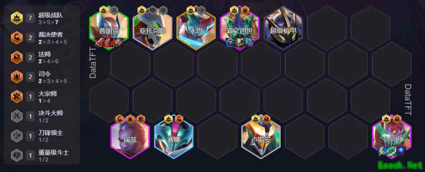 很快嗷,一转眼马上就到了S15上线的前夕,马上就要和S14说再见了,不知道兄弟们会不会有所怀念呢,S15有着全新的机制与各种新羁绊棋子,今天小6就给大家带来几套阵容推荐,帮助大家快速上手S15(tips:果实推荐给主C和主坦) 护卫狙神 5狙神4护卫3战斗学院2假面摔跤手2至高天2星守1魄罗之心阵容码:0216a18501816f164170179163190000TFTSet15护卫狙神在测试服属于较强势的阵容,依靠前排4护卫的双抗加成以及5狙神的增伤加成,前排顶到韦鲁斯释放技能,基本上就是一波的事情,就算没有完全杀完,那也杀个差不多了 主C韦鲁斯:头盔+无尽+破防 韦鲁斯技能会消耗法力值发射箭矢,而韦鲁斯又可以从场上阵亡的所有人获取到法力值,那么新版头盔就非常适配韦鲁斯,新头盔可以使所有来源的法力值获取增加15% 主坦蕾欧娜:冰甲+法袍+狂徒 也可以纯堆血量和双抗,将法袍和日炎等功能性防装给副坦带,换成板甲心之钢等 超级战队 7超级战队2裁决使者2法师2司令1大宗师阵容码:0215a01701601316d187019195000000TFTSet15兵王诺手 6重量级斗士4兵王1大宗师阵容码:0217619715a17717216e16618215c000TFTSet15 |