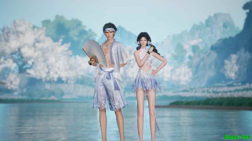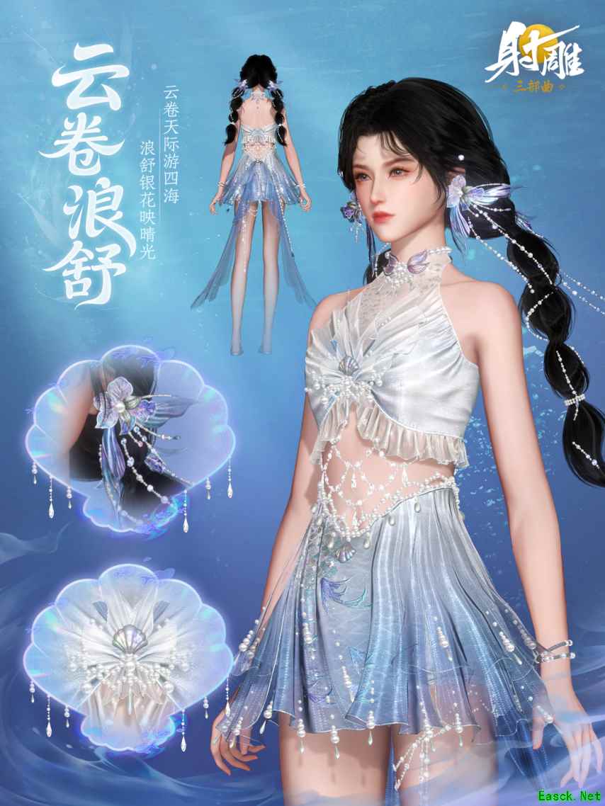 有人问雕子:明明是古风游戏,为何做出了“现代泳装”?其实不然,古人的夏天,早就把 “亲水” 写成了日常。 就像魏晋时人爱 “浮舟泛海”,王羲之在《兰亭集序》里写 “清流激湍,映带左右”,是把山水作衣裳;《清明上河图》里的仕女,会披轻薄纱衣坐在池边,纱料浸了水汽,比纨扇更能驱暑。古人从不是困在形制里的老刻板,而是对 “顺时应景” 的讲究 —— 就像春日簪花、秋日佩叶,夏日自然该有套能追浪、能纳凉的衣裳。 而“云卷浪舒” 便是从老祖宗的智慧中汲取精华:从仿制宋代 “水纹绫”开始,再借唐代 “披帛”的魂,做能追浪的纱。 7 月 31 日(星期四),《射雕》首款泳装【云卷浪舒】即将破浪登场!当古风雅韵邂逅夏日清凉,这场江湖限定的碰撞,定能让你解锁全新体验。 男款的 “礁石感”,藏着古人 “短打” 的影子—— 宋代穿的短衫,肩宽腰紧,我们保留了这种利落,但在袖口拼了纱料,像给礁石裹了层浪;