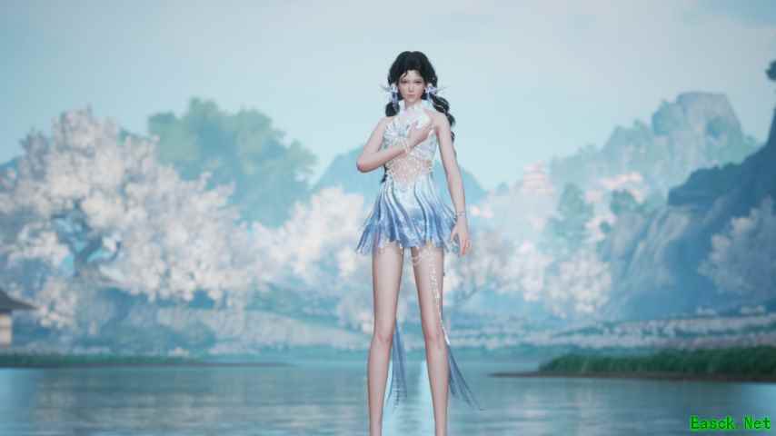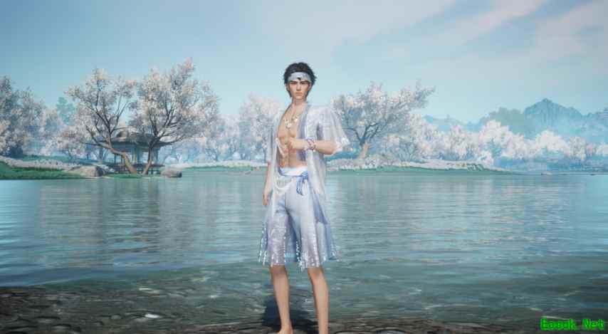 配色上,主色调选了「浪花白」与「浅滩蓝」—— 白是被阳光晒透的浪尖,蓝是刚没过脚踝的海水,边缘处用银线绣了细碎的波纹,走动时像有小鱼在布料下游过。